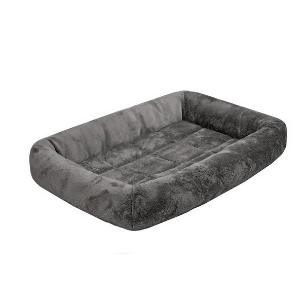 - Zоо-М Лежанка прямоуг.с валиком ^LAMA^55*40*8см(серый плюш.мех+сатин в/о,с/пух+поролон)