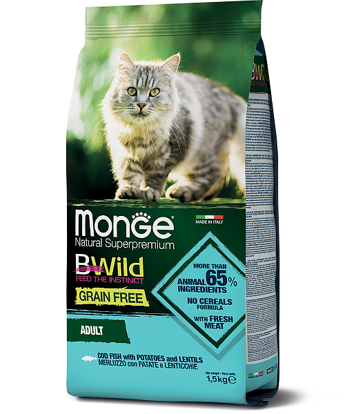 - Monge BWild Cat GRAIN FREE Беззерновой корм из трески для взрослых кошек 1,5 кг