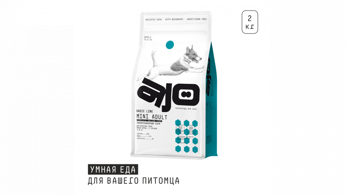 - AJO Dog Mini Adult корм с гречкой для взрослых собак малых пород 8 кг