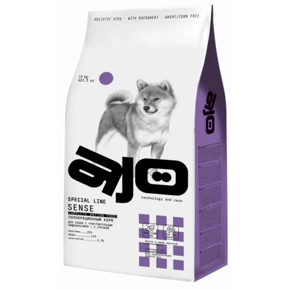 - AJO SENSE корм с гречкой для собак с чувствительным пищеварением 12 кг