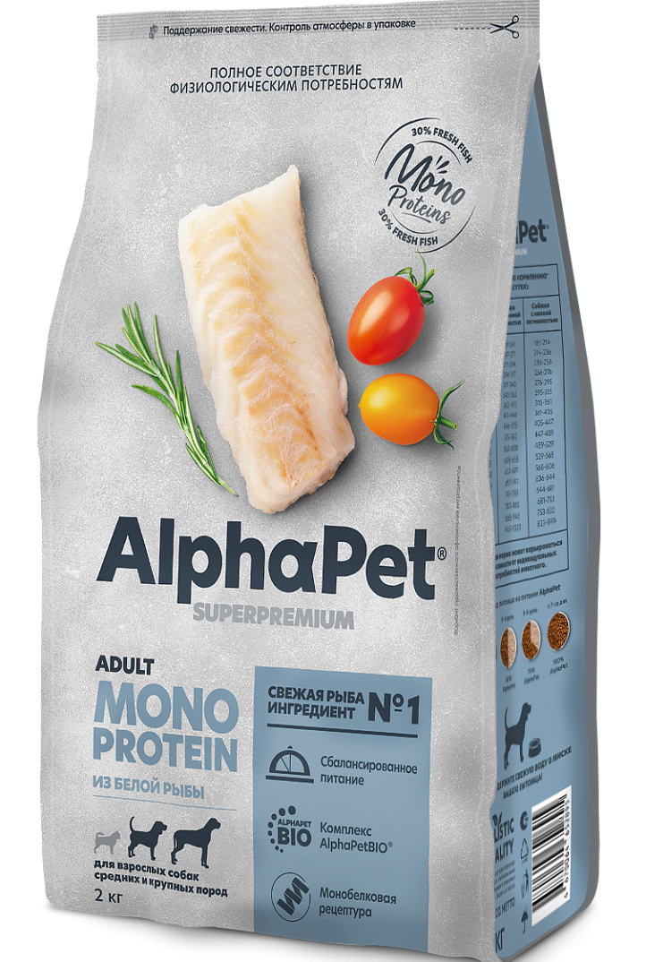 - AlphaPet Моно Белая рыба для взрослых собак средних и крупных пород 2 кг