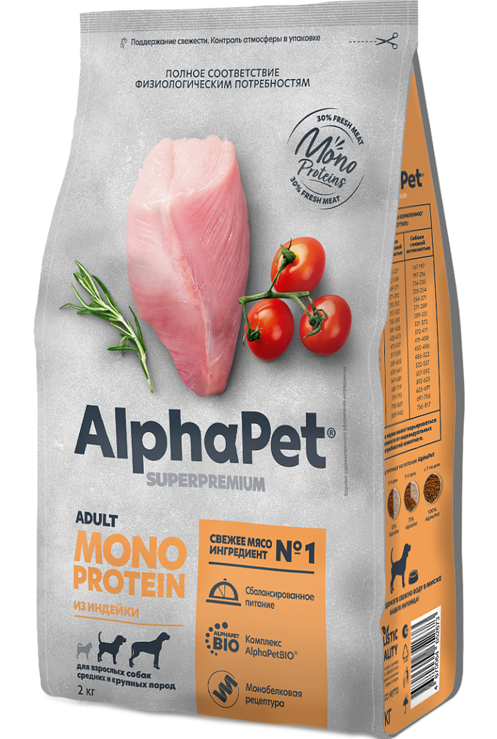- AlphaPetМоно Индейка для взрослых собак средних и крупных пород 2 кг
