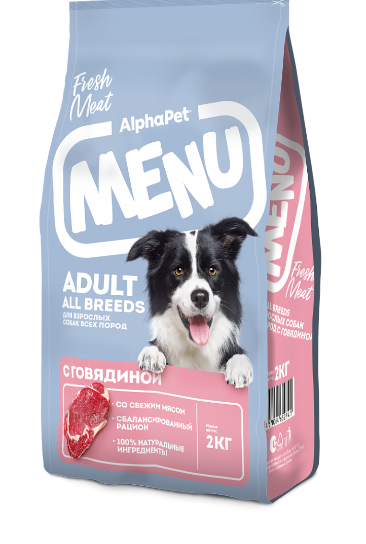 - AlphaPet MENU с говядиной для взрослых собак всех пород 15 кг
