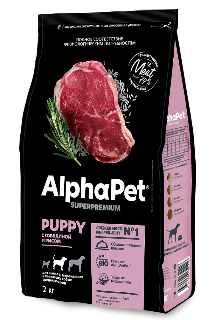 - AlphaPet С говядиной и рисом для щенков, беременных и кормящих собак средних пород 7 кг