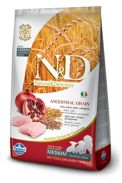 - N&D Dog Low Grain Chicken & Pomegranate Maxi Puppy Низкозерновой корм для щенков, беременных и кормящих собак крупных пород. Курица/гранат (2,5 кг)