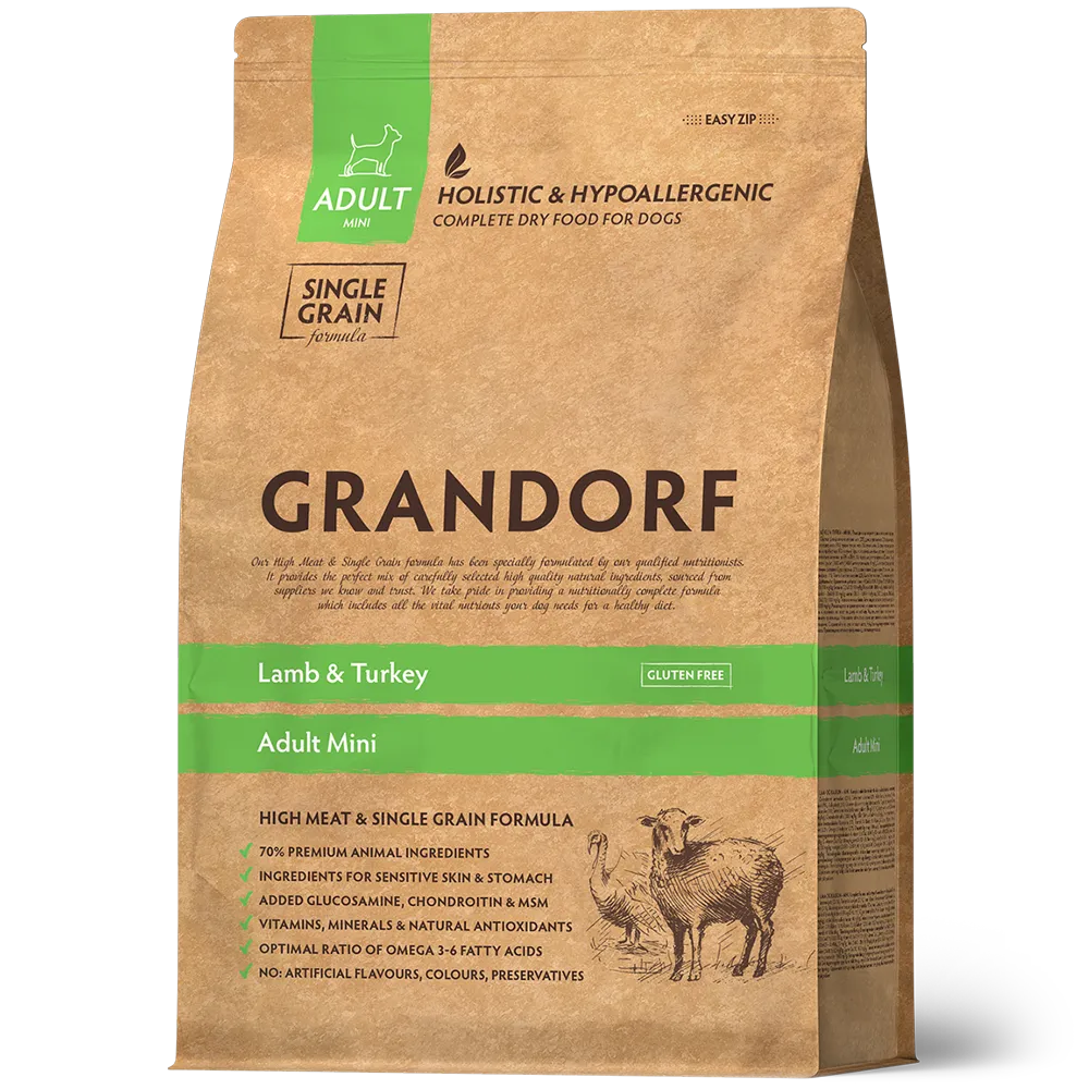 - Grandorf Lamb & Turkey Adult Mini Для взрослых собак мелких пород от 1 года (8 кг)